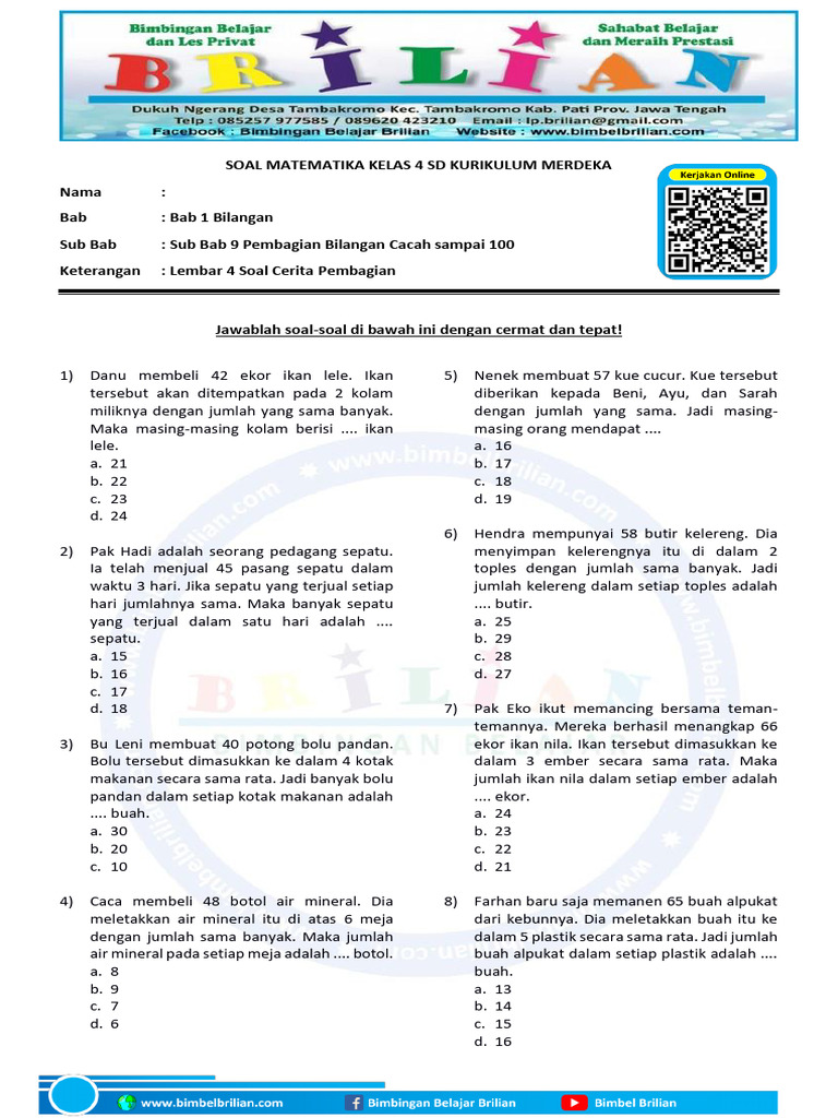 Soal cerita matematika kelas 4 K13 adalah jembatan penting antara konsep abstrak matematika dengan aplikasi praktisnya. Dengan memahami karakteristiknya dan menerapkan strategi pemecahan masalah yang efektif, siswa dapat belajar untuk mengurai "benang kusut" soal cerita dengan lebih percaya diri. Peran aktif guru dan orang tua dalam membimbing, memberikan dukungan, dan menciptakan lingkungan belajar yang positif akan sangat menentukan keberhasilan siswa dalam menguasai keterampilan vital ini. Mari bersama-sama membekali generasi muda kita dengan kemampuan berpikir matematis yang kuat, yang tidak hanya berguna di bangku sekolah, tetapi juga di sepanjang hidup mereka.